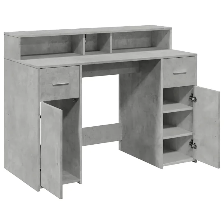• Biurko w kolorze szarego betonu to eleganckie, naturalne wykończenie pasujące do różnych wnętrz.
