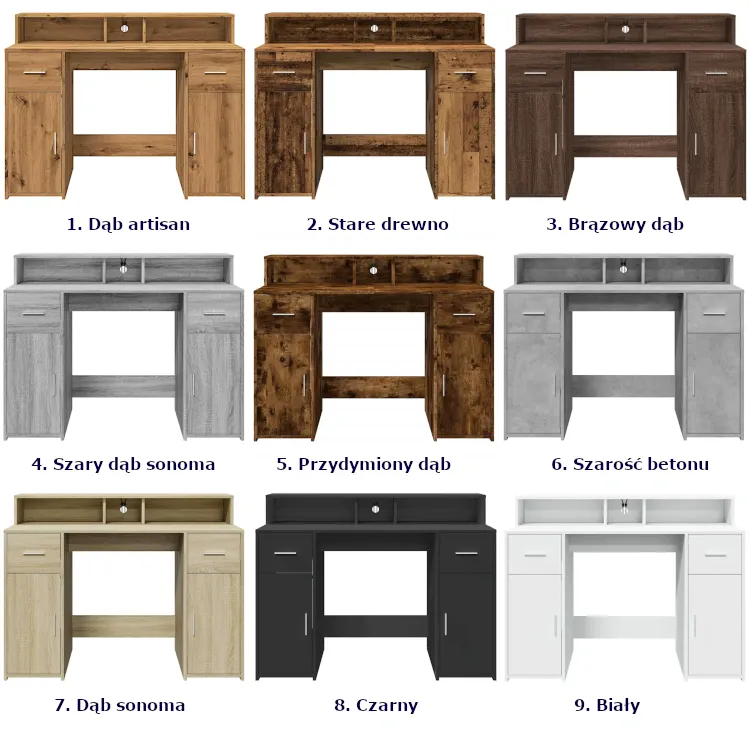 Wersje kolorystyczne biurek Duna
