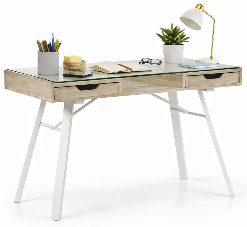 - Biurko wyposażone w półkę oraz dwie praktyczne szufladki na dokumenty i akcesoria biurowe.