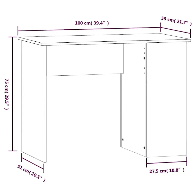 • Wymiary biurka: szerokość: 100 cm, głębokość: 55 cm, wysokość: 75 cm.