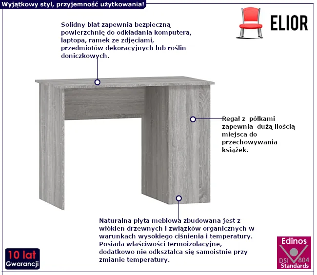 • Kolor: szrego dębu sonoma. W naszej ofercie posiadamy także inne biurka.