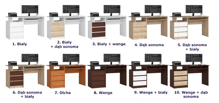 Poniżej przedstawiamy kolory biurek Viviro 2X. Kliknij tutaj i wybierz ten, który najbardziej przypadnie Ci do gustu!