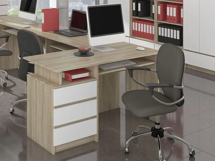 Dotyczy: Biurko do komputera z szufladami biały + dąb sonoma - Viviro 2X