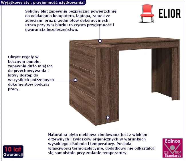 Dotyczy: Brązowe biurko z regałem przydymiony dąb - Brezi