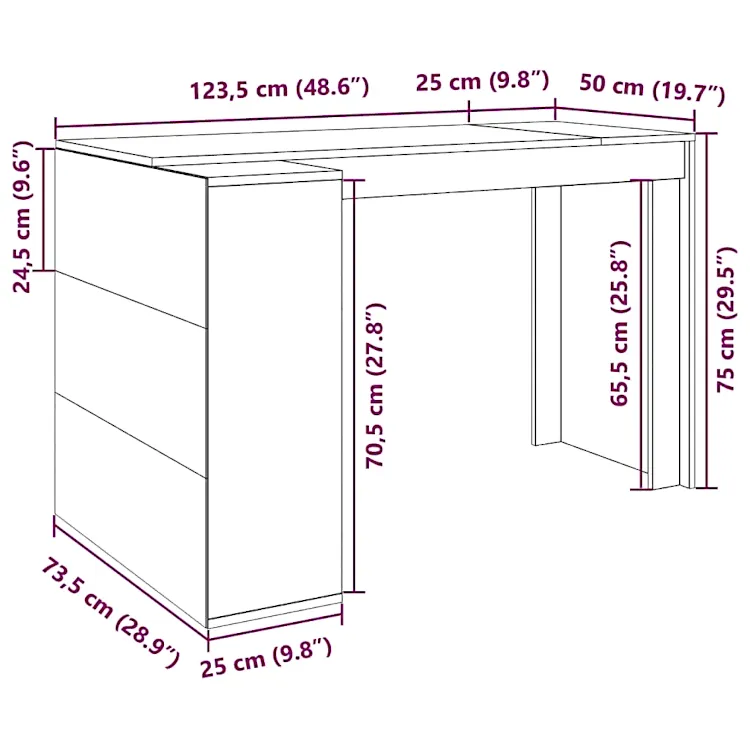 • Wymiary biurka: szerokość: 123,5 cm, głębokość: 73,5 cm, wysokość: 75 cm.