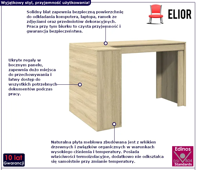 • Kolor: dąb sonoma. W naszej ofercie posiadamy także inne biurka.