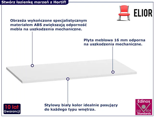 • Obrzeża ABS o grubości 0,5 mm chronią krawędzie i zwiększają trwałość produktu.