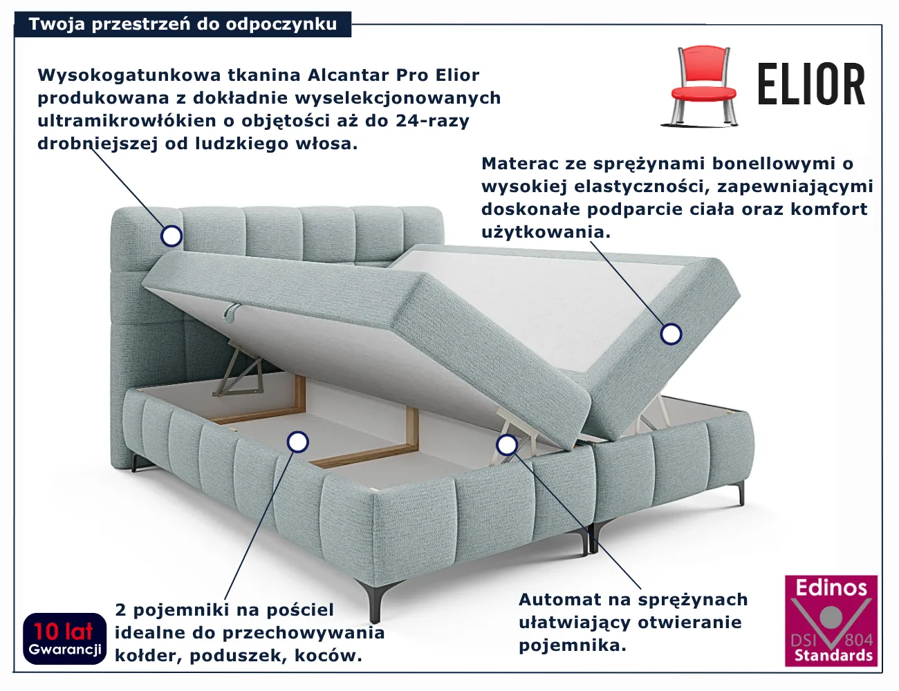 Dotyczy: Zielone pikowane łóżko z pojemnikiem 5 rozmiarów - Ravesso