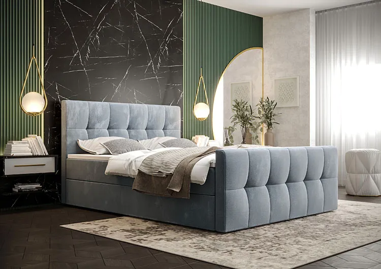 Błękitne tapicerowane welurem łóżko 6 rozmiarów - Manteris