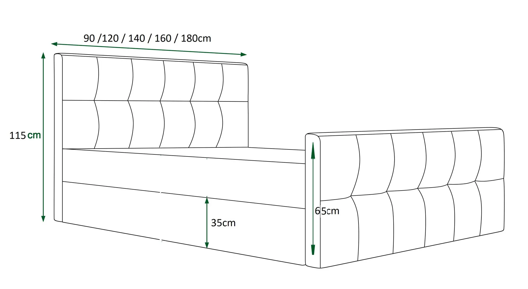 Dotyczy: Ciemnozielone welurowe łóżko pikowane 5 rozmiarów - Valmiro