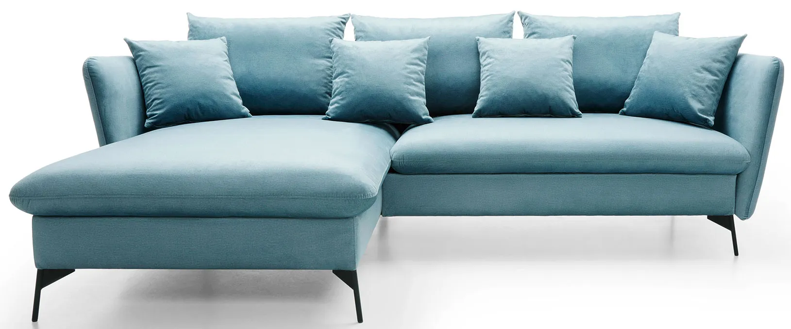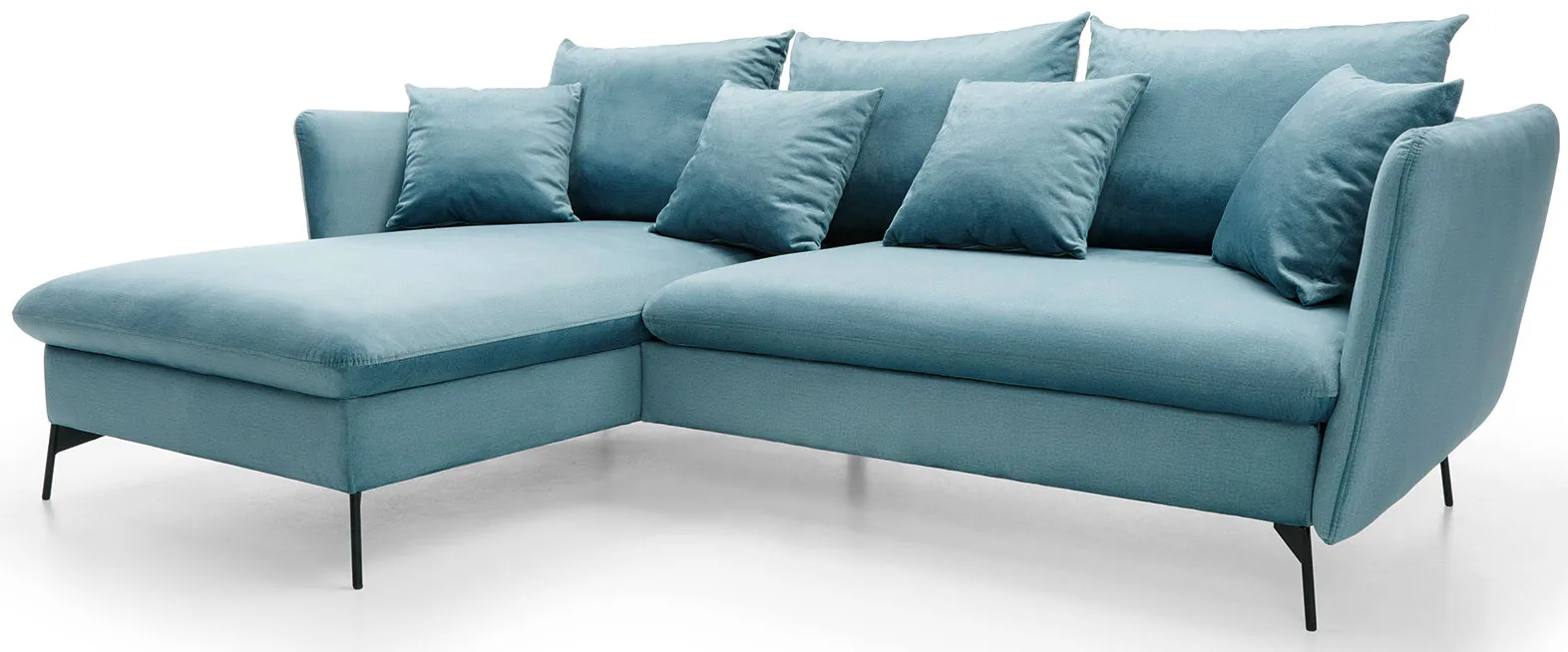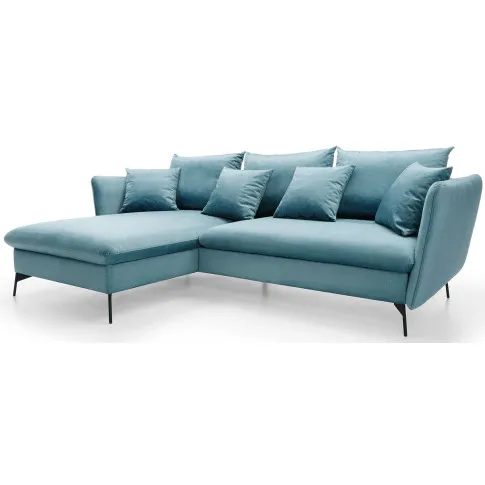 Błękitny narożnik welurowy z poduszkami Pessio 4X