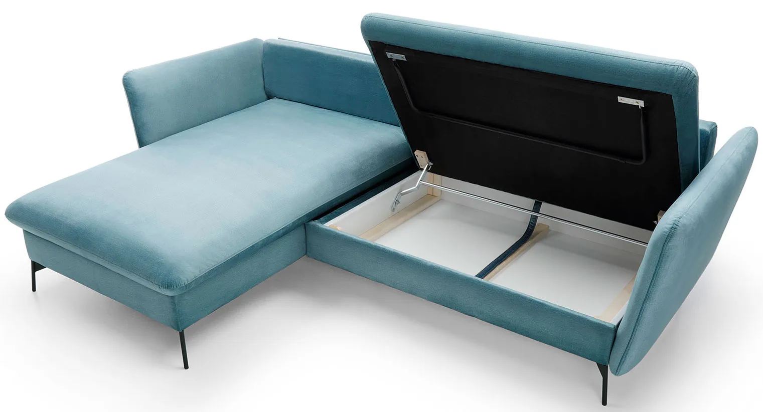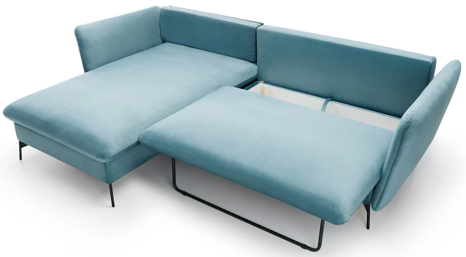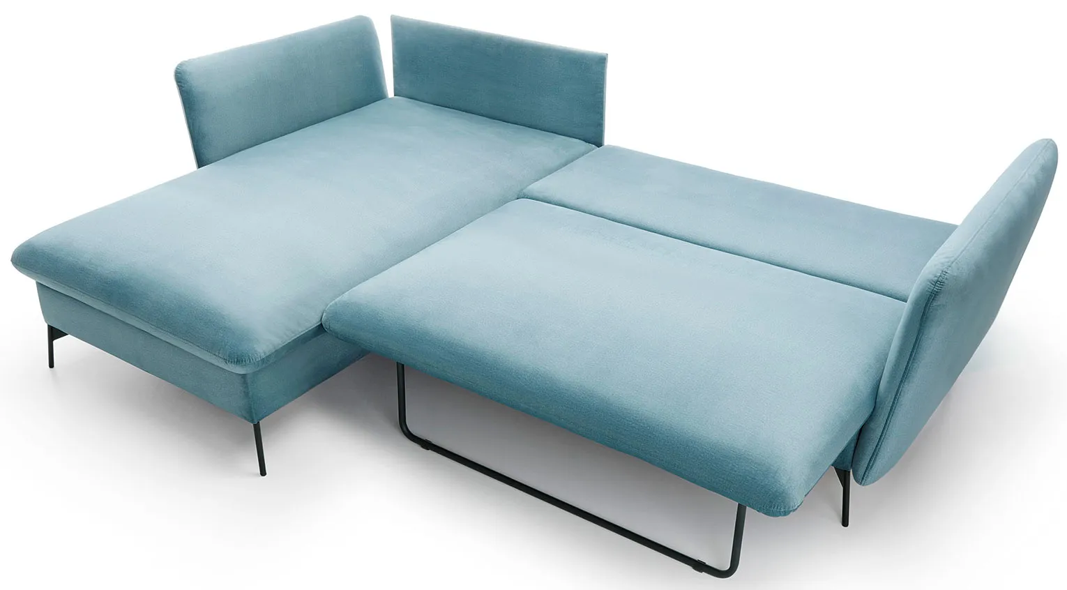 Błękitny welurowy narożnik z funkcją spania - Pessio 4X