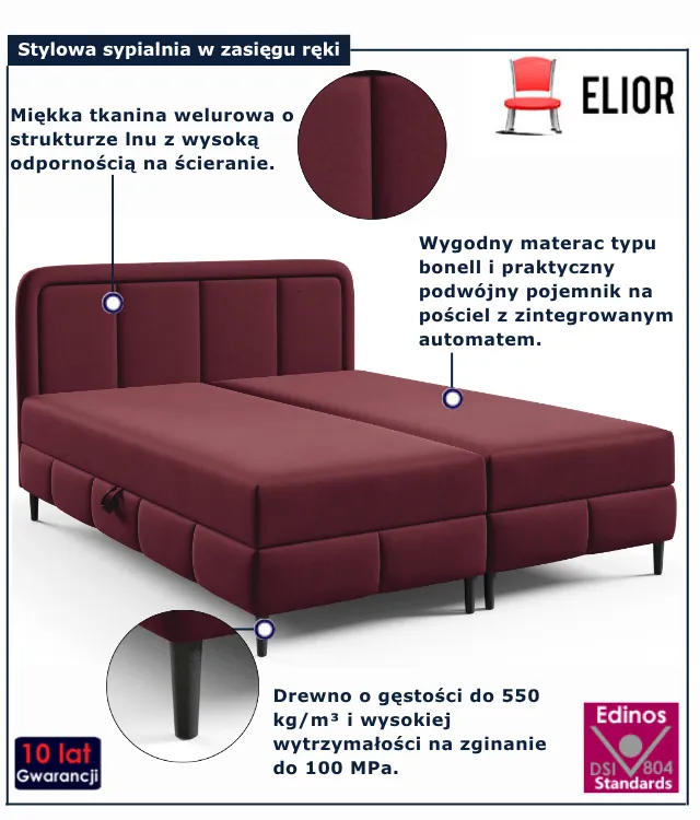 Dotyczy: Szare łóżko kontynentalne dwuosobowe z zagłówkiem Acianna - 5 rozmiarów