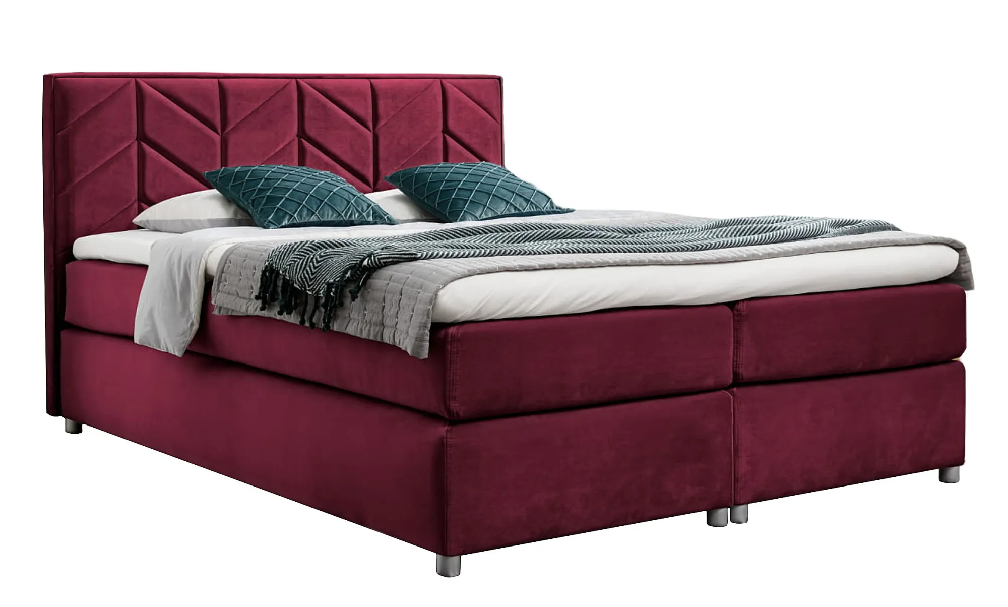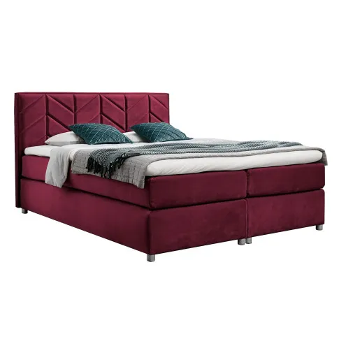 Bordowe welurowe łóżko kontynentalne 5 rozmiarów - Ferlevio