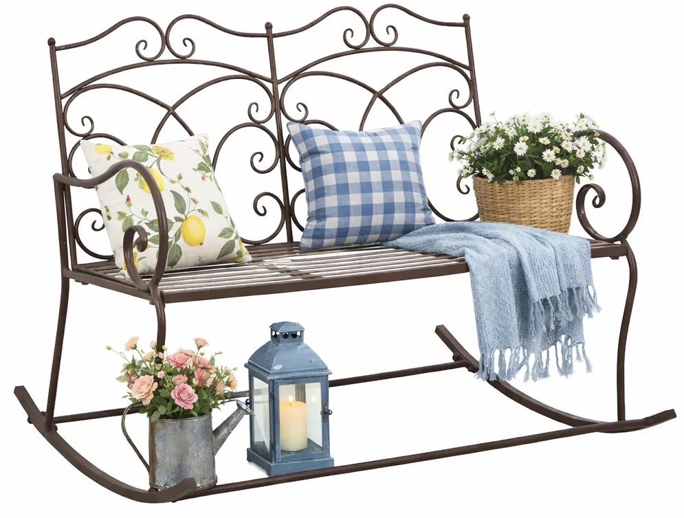 Produkt Brązowa bujana ławka ogrodowa metalowa - Ridon