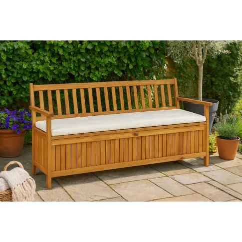 Żaden ogród nie obędzie się bez wygodnego miejsca do siedzenia. Ławka Kaja z pewnością stanie się stylowym uzupełnieniem takiej przestrzeni, choć może posłużyć również w przedpokoju. Zapewni Ci nie tylko najwyższy komfort, ale posłuży w praktyczny sposób jako schowek. Twoi goście docenią jej wygodny profil, a nienaganny styl przełamie banał i nudę. Mebel ten odnajdzie się w rustykalnej, sielskiej aranżacji. Wprowadzi więc do Twojego otoczenia ciepłą atmosferę, dzięki której ogród stanie się nastrojowym miejscem. Zadbaj o wystrój swojej werandy, tarasu lub patio za pomocą ławki z klasą!