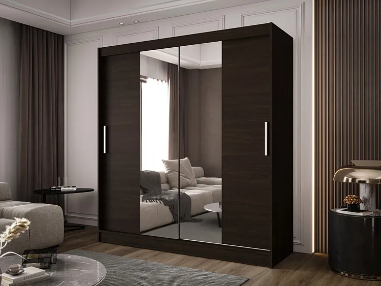 Dotyczy: Biało-czarna szafa przesuwna z lustrzanymi frontami - Kaliope 4X