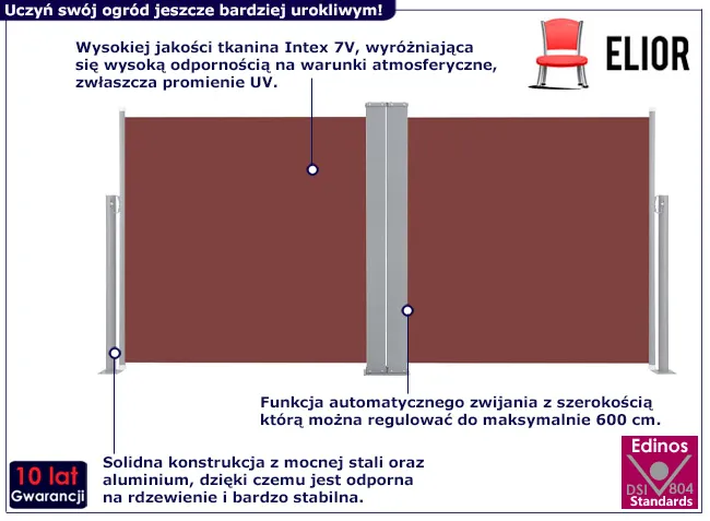 • Kolor: brązowy. Kliknij w link i sprawdź także inne markizy boczne w sklepie Edinos.pl. Stwórz swóją praktyczną przestrzeń.