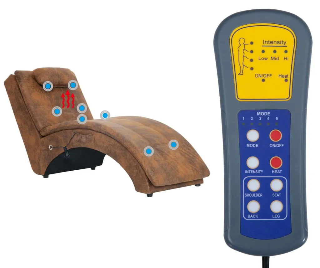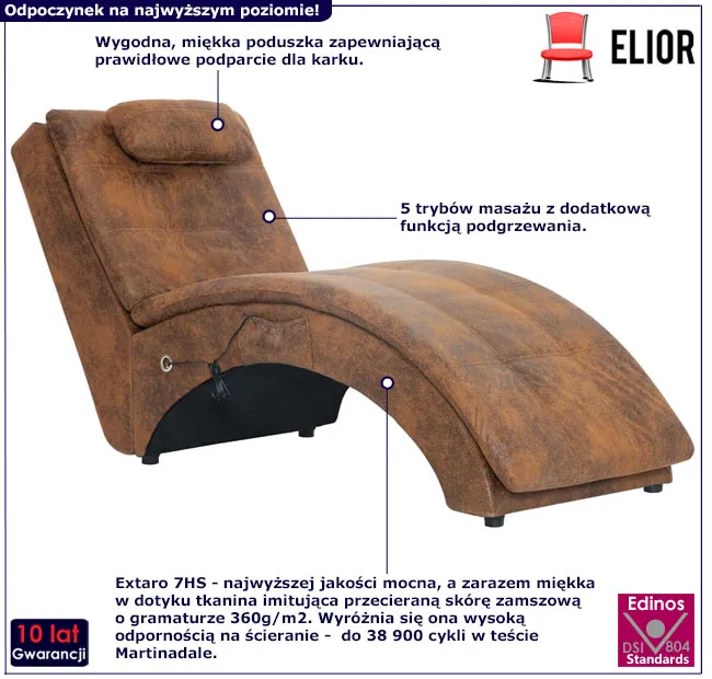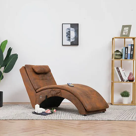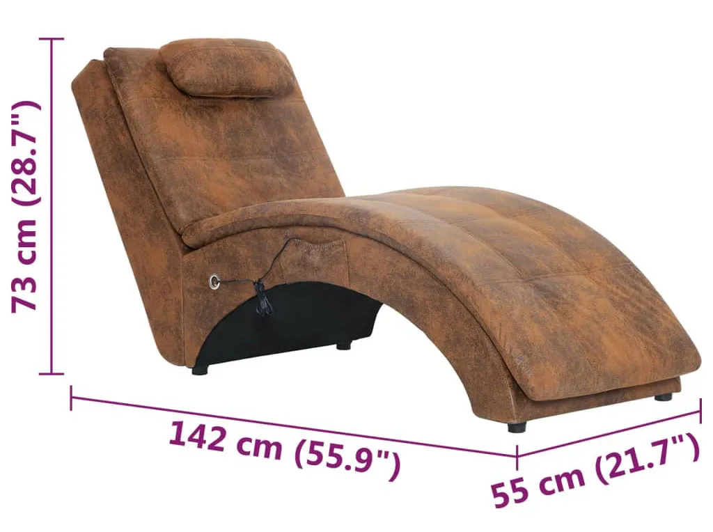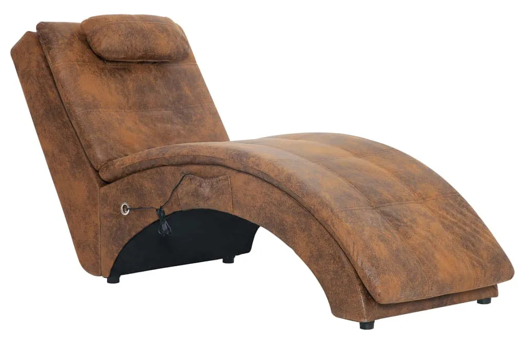 Brązowa masująca leżanka do salonu z zamszowej skóry - Leah 5X