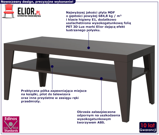 - Modna kolorystyka: brązowy. Kliknij w link i sprawdź także inne prostokątne ławy i stoliki kawowe  w sklepie Edinos.pl. Stwórz swój praktyczny zestaw mebli.