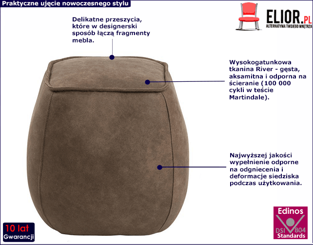 • Modna kolorystyka: brązowy. Kliknij w link i sprawdź także inne pufy w sklepie Edinos.pl. Stwórz swój praktyczny zestaw mebli.