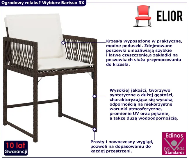 Dotyczy: Czarno - kremowy zestaw krzeseł ogrodowych z poduszkami 4 szt. - Baltica 3X