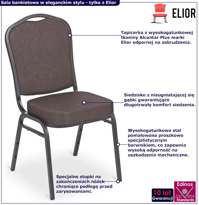 Krzesło bankietowe Danior 4X marki Edinos Premium to inwestycja w komfort i elegancję, która przyniesie korzyści na wielu poziomach. Wybór krzesła sztaplowanego Danior 4X to decyzja, która zapewni satysfakcję zarówno organizatorom wydarzeń, jak i ich gościom, podnosząc standard i jakość każdej uroczystości. Wybierz krzesło tapicerowane Danior 4X zamawiając je za jedyne 198 zł i ciesz się wygodą oraz stylem, które przetrwają próbę czasu. Sprawdź!