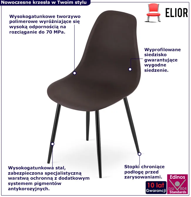 Brązowe krzesło nowoczesne z czarnymi nogami - Exin 4X