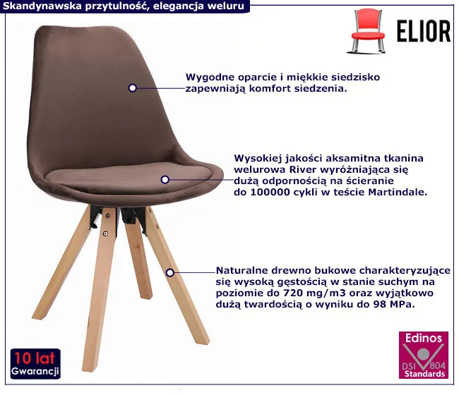 Brązowe krzesło skandynawskie tapicerowane welurem - Timar