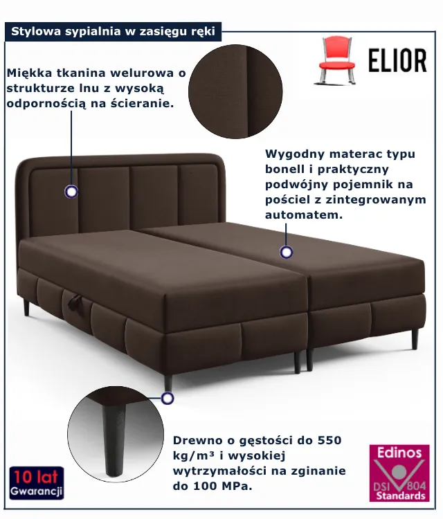 Dotyczy: Szare łóżko kontynentalne dwuosobowe z zagłówkiem Acianna - 5 rozmiarów
