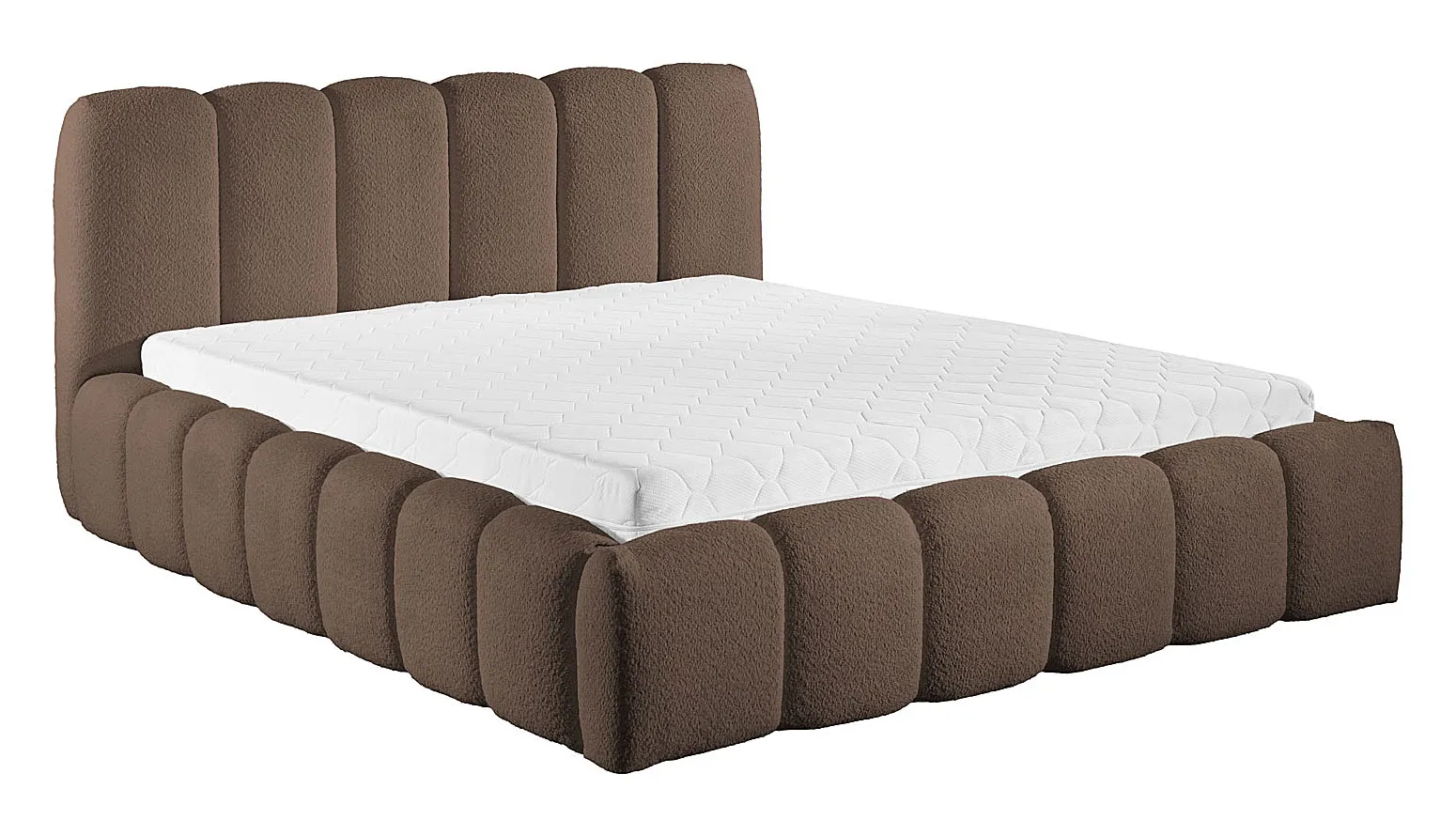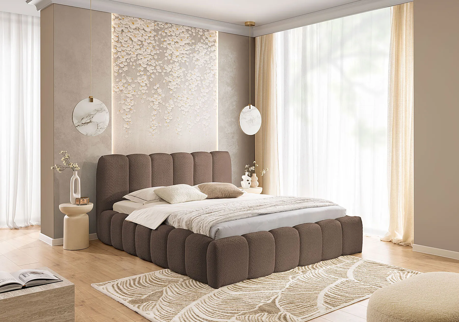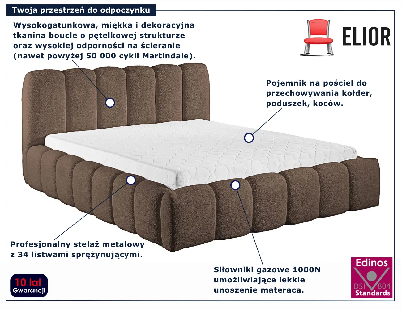Dotyczy: Granatowe łózko tapicerowane tkaniną boucle - Nuviano