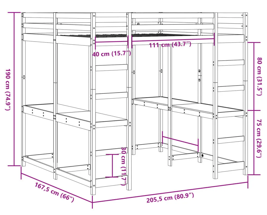 Dotyczy: Białe piętrowe łóżko z 2 biurkami na dole 160x200 - Vasmo 4X