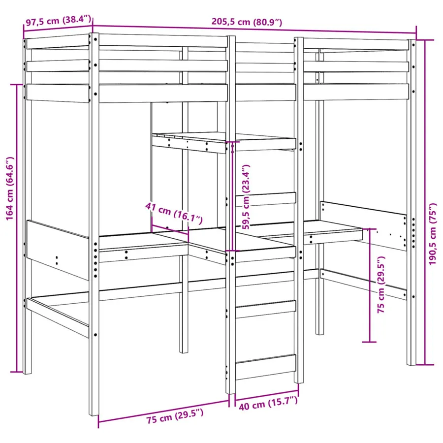 Dotyczy: Białe łóżko na antresoli z podwójnym biurkiem 90x200 - Mirja 6X