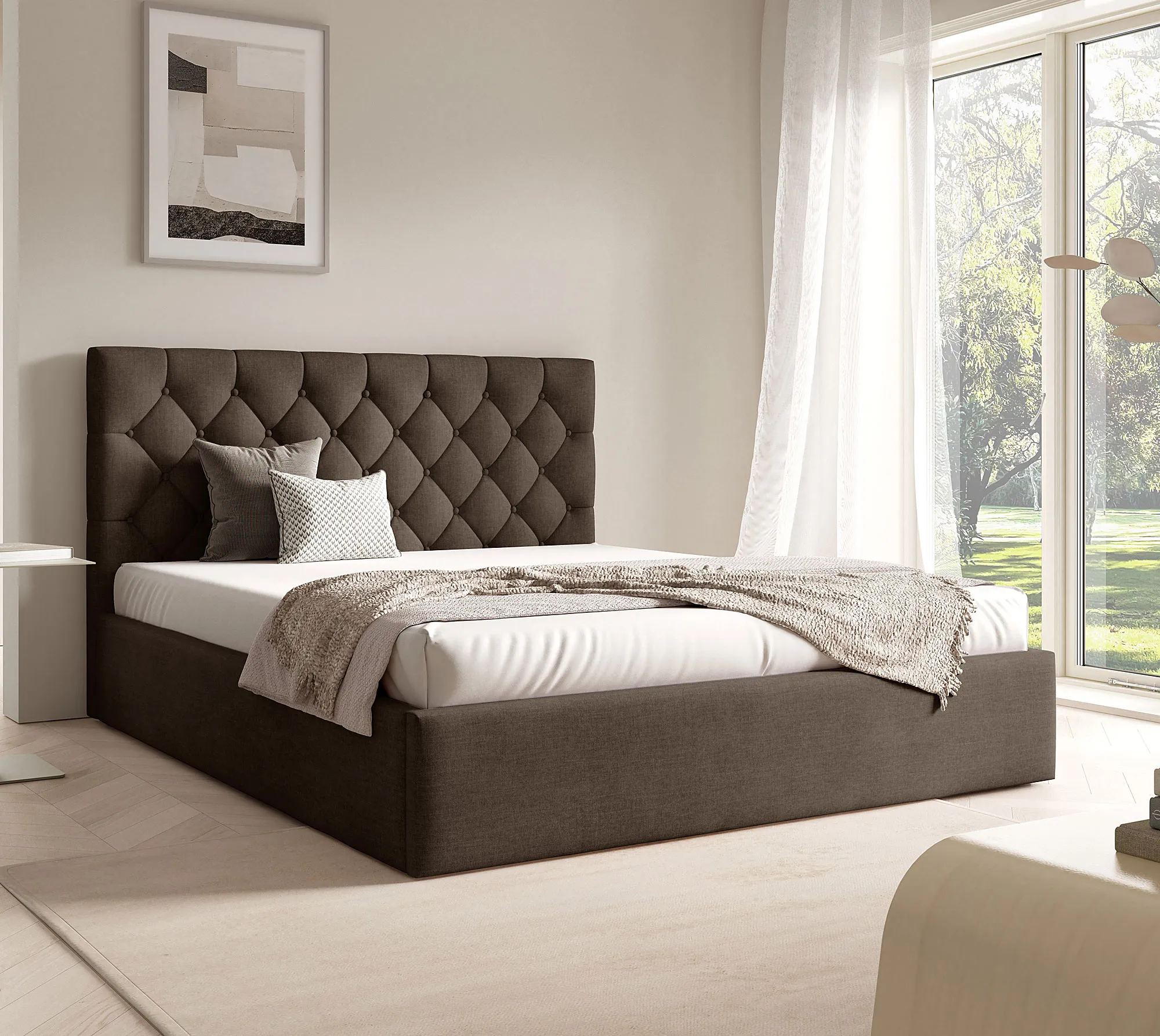 Dotyczy: Jasnobrązowe łóżko z pojemnikiem na pościel 3 rozmiary - Lestiria