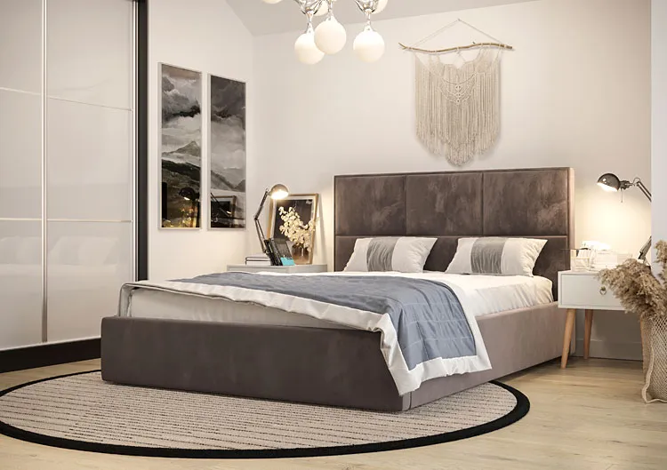 Elegancka sypialnia z wykorzystaniem łóżka kontynentalnego Welario