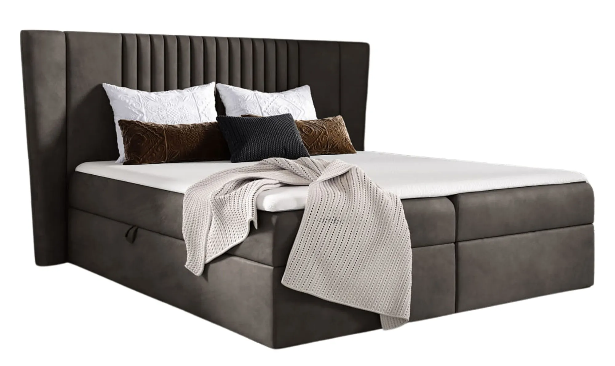 Brązowe łóżko tapicerowane z pojemnikiem 5 rozmiarów - Orlento
