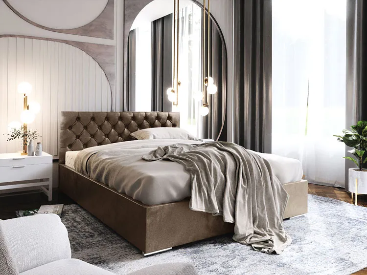Dotyczy: Czarne tapicerowane welurem łózko z pikowaniem 5 rozmiarów - Cavenio