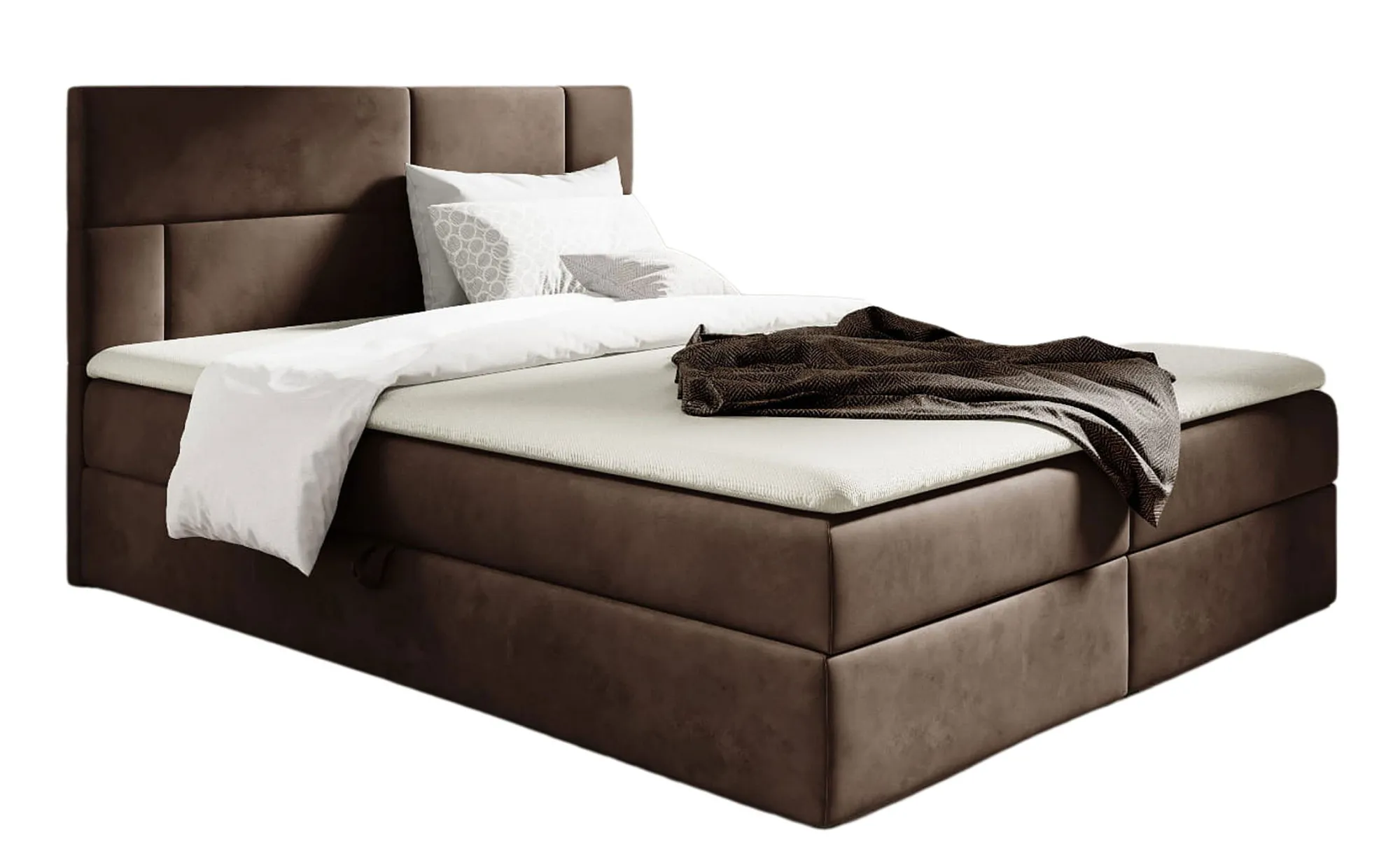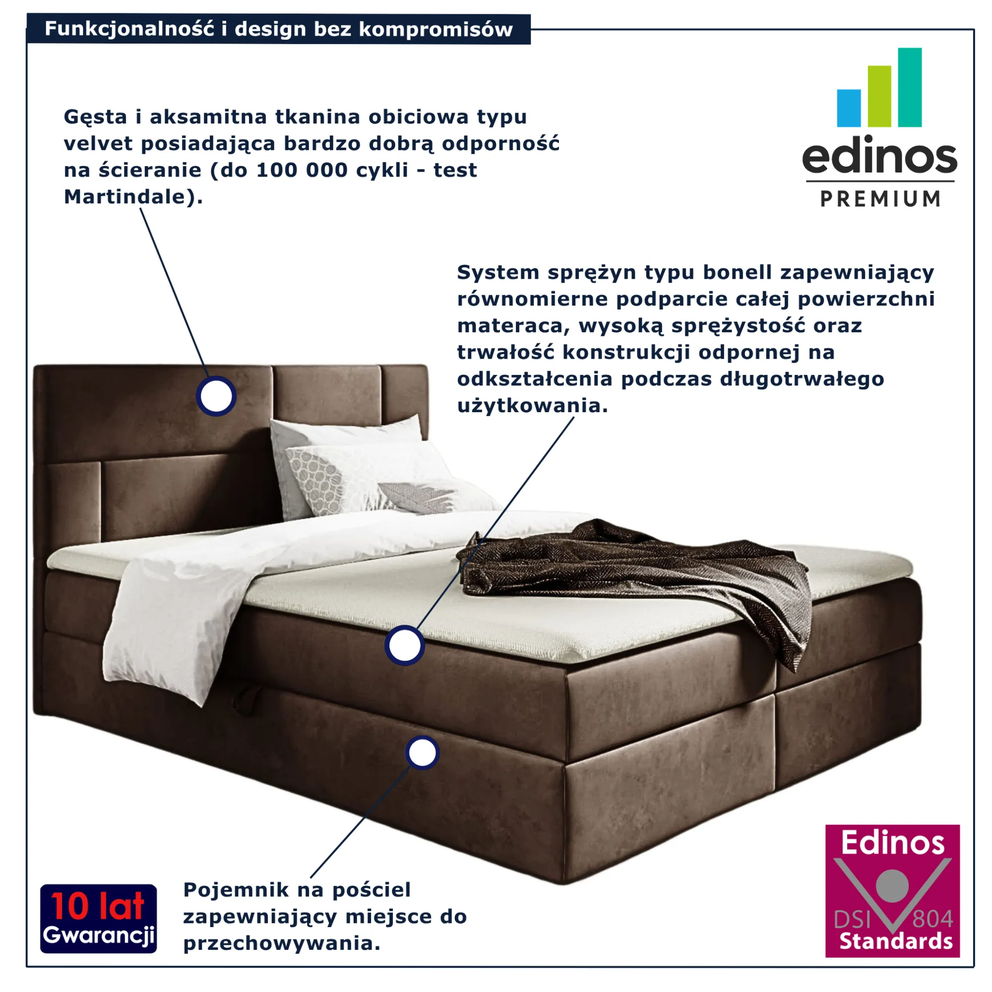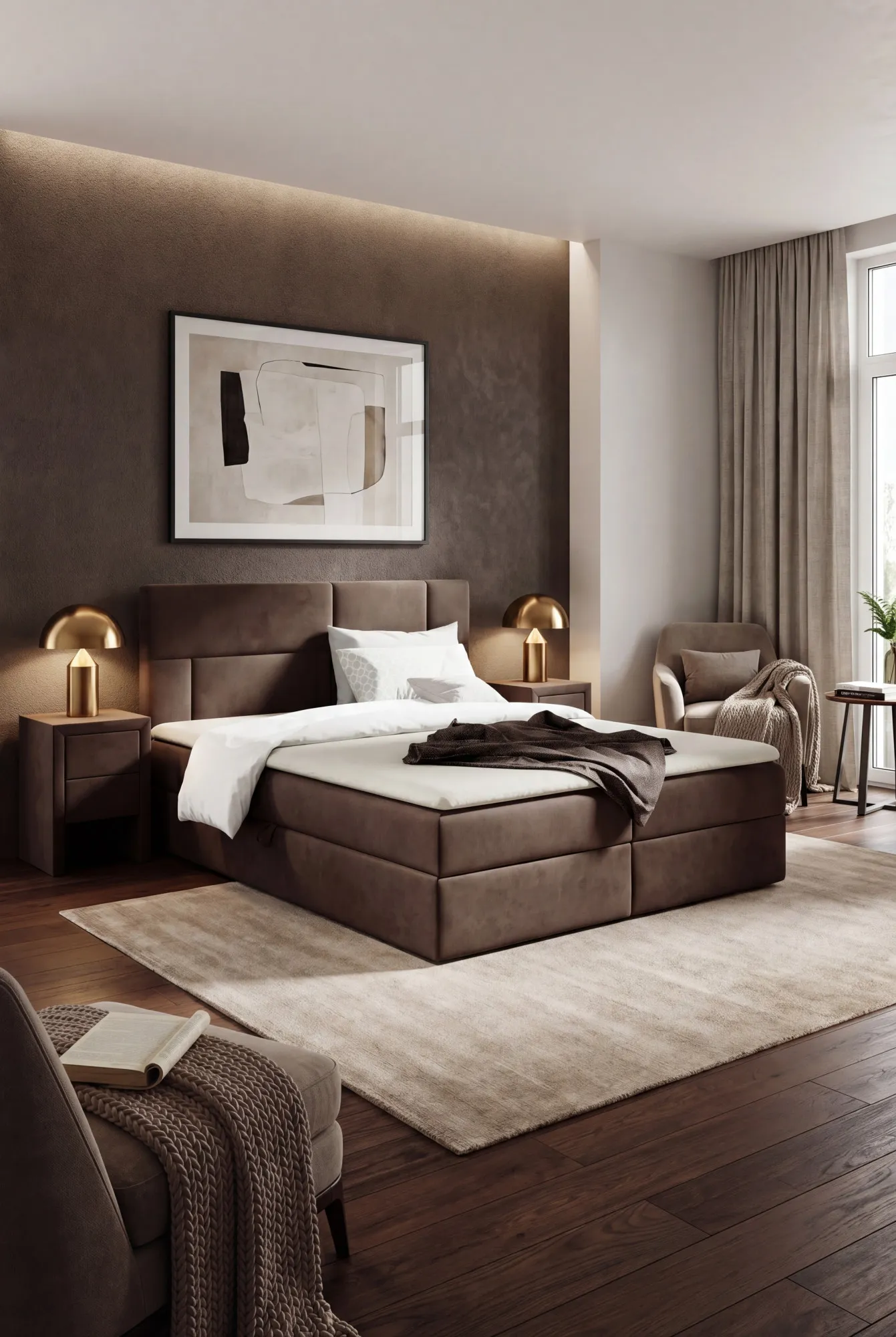Aranżacja sypialni z brązowym łóżkiem kontynentalnym Orellis