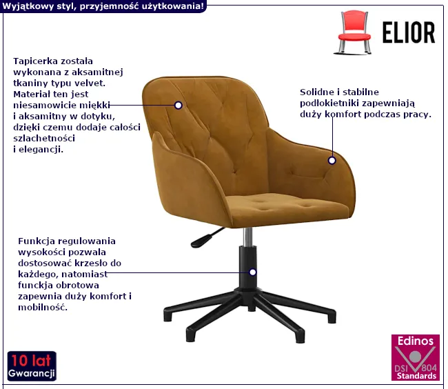Zamów już dziś fotel biurowy Picanta 4X marki Edinos Premium i wprowadź do swojego biura odrobinę luksusu i elegancji. Niech każda chwila spędzona w pracy stanie się przyjemnością dzięki wyjątkowemu komfortowi i stylowi. Wybierz jakość i wyrafinowanie, które podkreślą charakter Twojej przestrzeni biurowej. Inwestycja w fotel Picanta 4X to inwestycja w komfort i prestiż w Twoim miejscu pracy. Powyższa oferta dotyczy fotela w kolorze brązowym w promocyjnej cenie 398 zł. Regularna cena tego mebla to 468 zł. Zamawiając go właśnie teraz zyskujesz aż 70 zł rabatu!