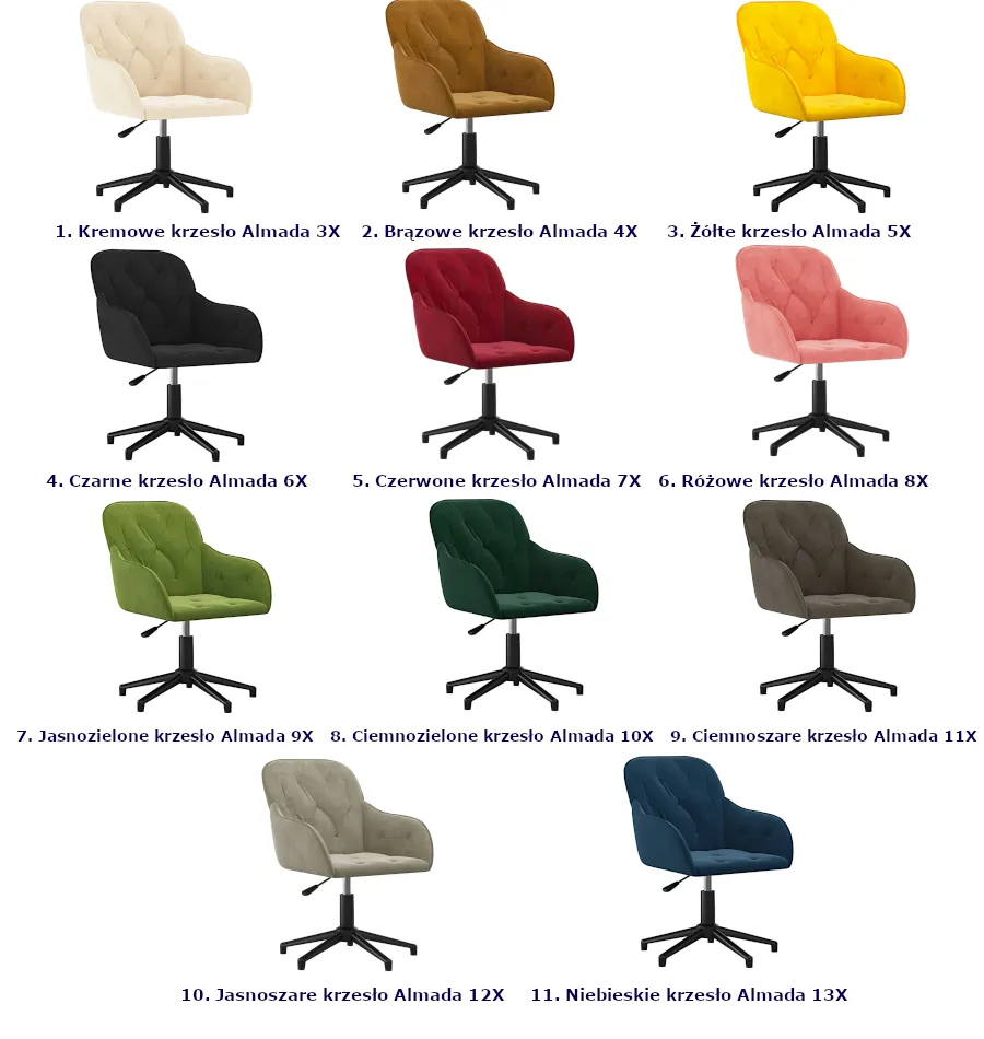 Poznaj inne wersje kolorystyczne obrotowego krzesła biurowego Almada: