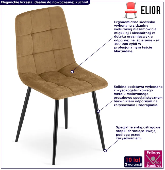 Postaw na rozkoszne doznania. Pluszową, aksamitną tapicerkę krzesła Besti 4X marki Edinos Premium wystarczy delikatnie musnąć dłonią, by poczuć subtelne i przyjemnie mrowienie pod palcami... Ponadto tkaniny welurowe to synonim luksusu, którego każda z nas pragnie w swoim wnętrzu. Zainwestuj w ten nietuzinkowy aksamitny mebel do swojej jadalni i ciesz się nim na co dzień.