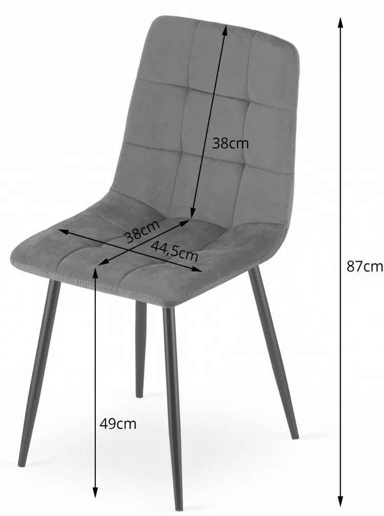 Krzesła są naprawdę wyjątkowe! Welur jest miękki, a metalowa podstawa solidna. Doskonale komponują się z wystrojem mojego salonu.