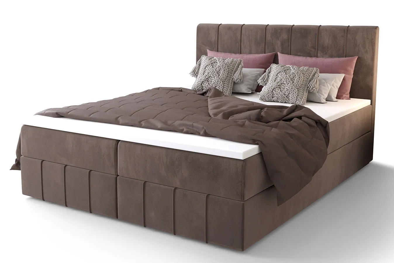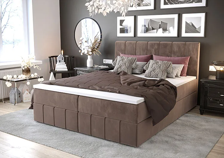 Brązowe tapicerowane łóżko kontynentalne 4 rozmiary - Melviano