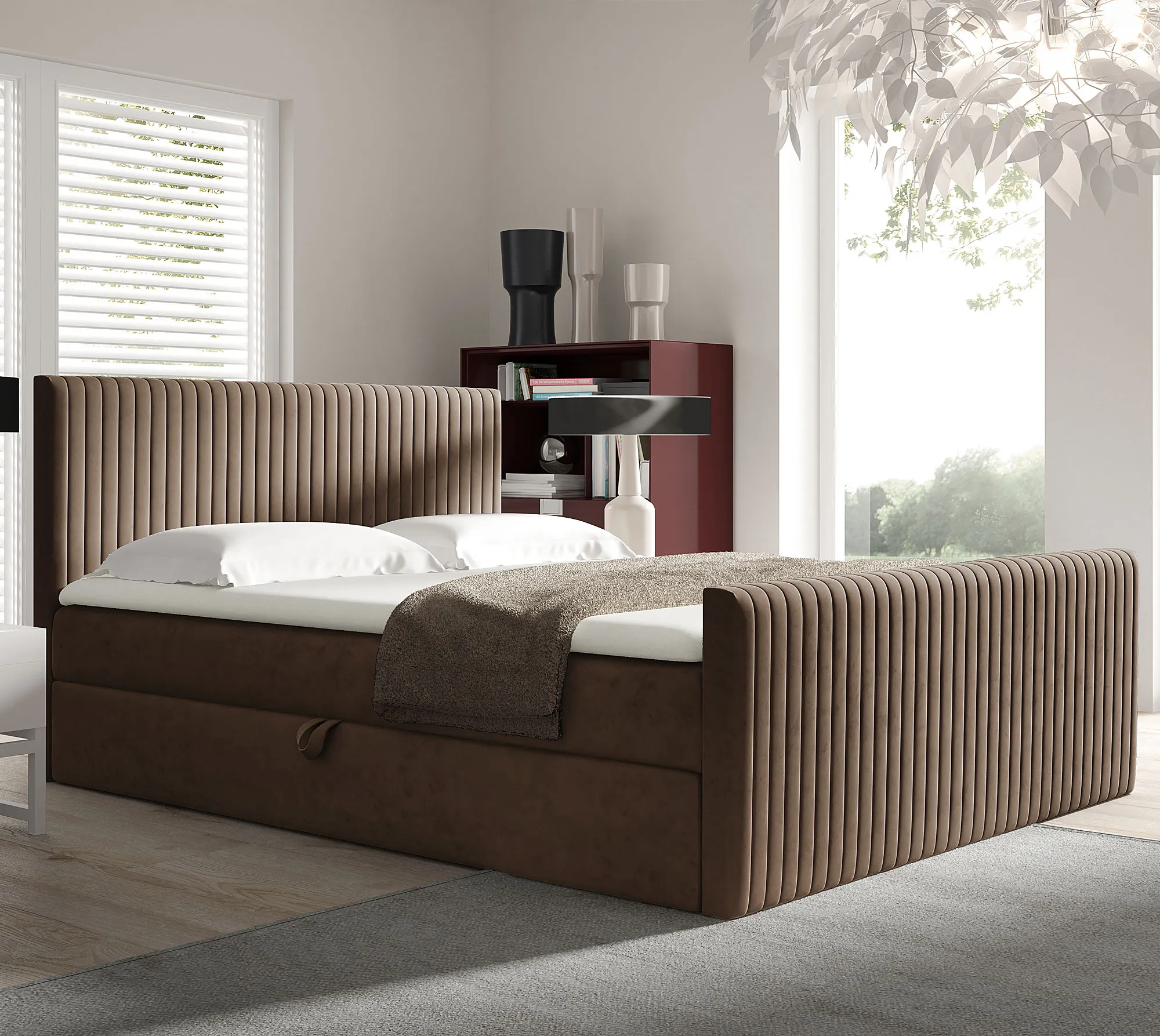 Dotyczy: Szare pikowane łóżko kontynentalne z pojemnikiem 5 rozmiarów - Naverro