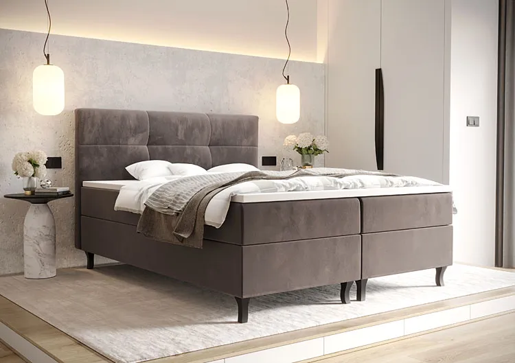 Brązowe welurowe łóżko kontynentalne 6 rozmiarów - Taverox