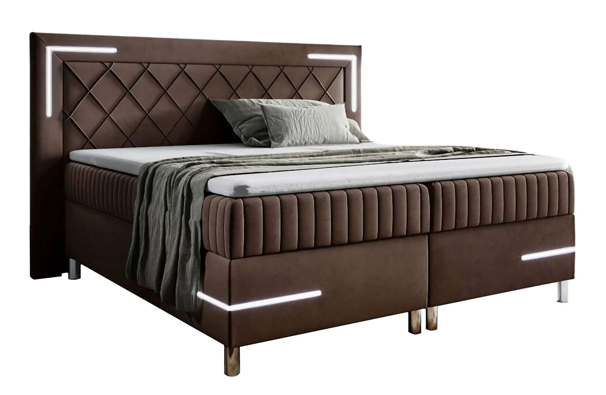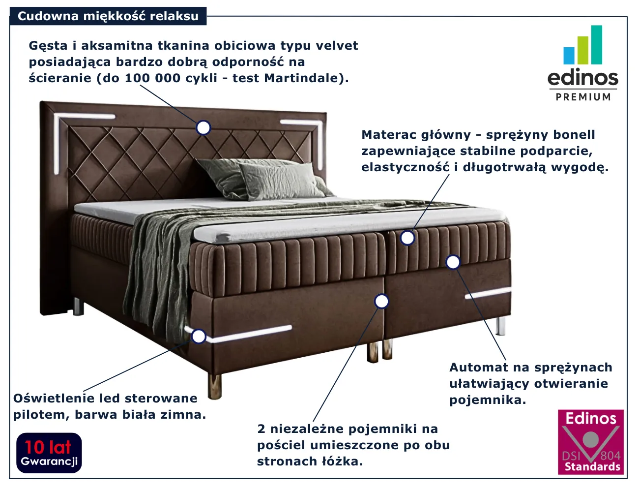 Brązowe welurowe łóżko pikowane z pojemnikiem 5 rozmiarów - Solterro