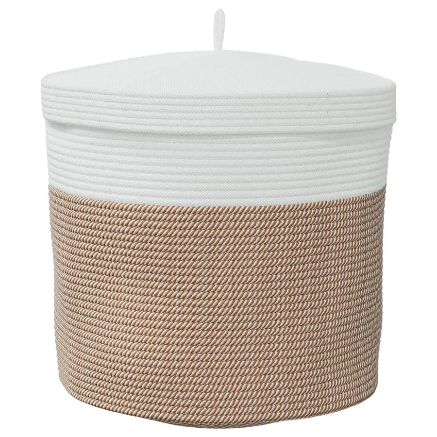 Brązowo-biały kosz na pranie z pokrywą - Modus
