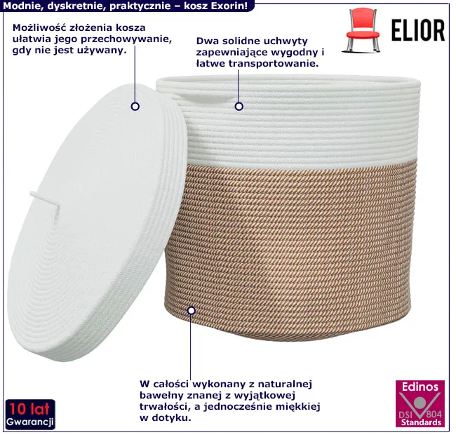 • Kolor: brązowy + biały. W naszej ofercie posiadamy także inne kosze na pranie.