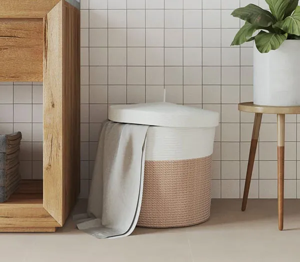 • może służyć nie tylko jako kosz na pranie, ale również jako stylowy pojemnik na zabawki, ręczniki, koce czy inne akcesoria domowe, pomagając utrzymać porządek i dekoracyjny ład.
