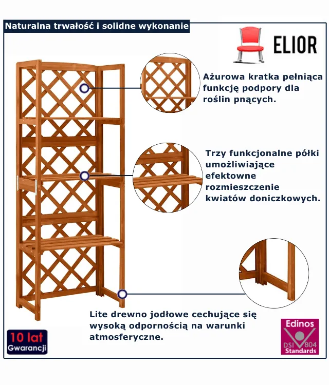 Znasz to uczucie, gdy masz piękne rośliny, ale brak Ci miejsca, by je odpowiednio wyeksponować? A może szukasz czegoś, co nie tylko uporządkuje Twoje zielone kompozycje, ale też doda uroku balkonowi, tarasowi czy ogrodowi? Regał Exo marki Edinos Premium to odpowiedź na te potrzeby – stylowy, funkcjonalny i zaprojektowany z myślą o tych, którzy cenią harmonię z naturą i estetykę w codziennym otoczeniu. Ten regał to coś więcej niż stojak – to sposób na stworzenie mini oazy zieleni, nawet na małej przestrzeni. Wystarczy kilka roślin, dekoracyjna doniczka i masz swój kącik relaksu. Brzmi jak coś, czego właśnie potrzebujesz?